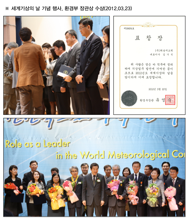 ''2012 세계기상의 날'' 유공 환경부장관 표창을 받으셨습니다.